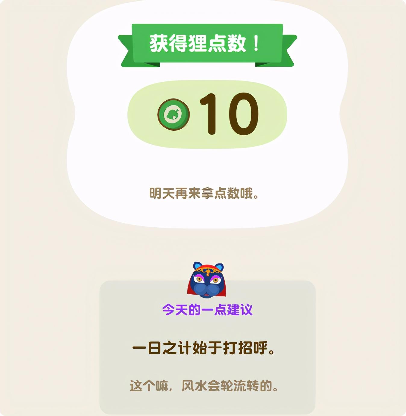 我的设计则可以将其他玩家分享的设计QR码转换到游戏中,也几乎是每一位动森玩家的必备工具~而前不久新开的“狸点数”功能,则需要我们每天签到,并兑换限定物品。