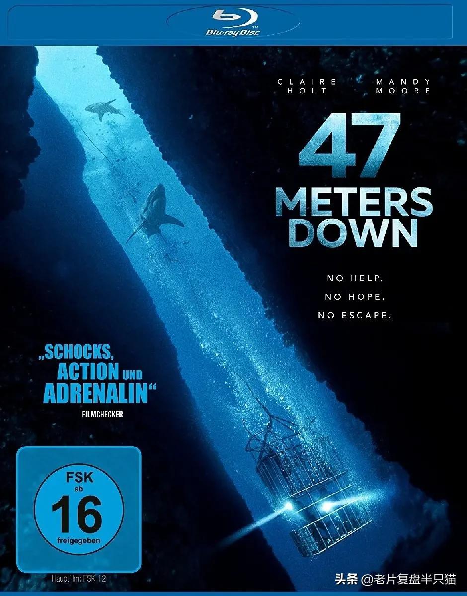 Lisa(曼迪·摩尔 Mandy Moore 饰)和Kate(克莱尔·霍尔特 Claire Holt 饰)两姐妹在墨西哥海岸度假,她们在海底观鲨铁笼中潜水观赏鲨鱼时,牵连铁笼的绳子突然断裂,观鲨笼掉落到47米深的海底。由于所存氧气不多,她们只有一个小时的时间逃脱牢笼回到水面。而此时,大白鲨也在她们周围游弋着。47米深的海底一片漆黑,只能通过手电筒观察铁笼外面的情况。水面上工作人员的声音时有时无,救援队也迟迟不见踪影,姐妹俩都非常害怕。面对仅剩的氧气,她们必须马上做出选择才有一线生机。为了避开鲨鱼活着游出水面,姐妹两人与鲨鱼之间展开了一场斗智斗勇扣人心弦的生死较量……