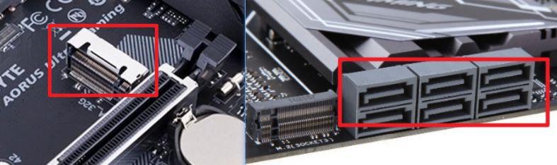 现在大多数主板都有两个硬盘接口,一个是M.2,一个是SATA。(M.2接口多以固态硬盘为主,SATA接口多以机械硬盘为主),另外需要注意的是,M.2固态硬盘不需要单独供电,而机械硬盘需要单独供电(同时还需要单独的数据线),所以,对于机箱硬盘,需要将以上两种线材分别插入相应的接口才能正常使用,否则就白搭了。M.2固态可以直接插在主板上,用螺丝固定。 在一些高端主板上,固态还单独配备了散热片,用于辅助散热。
