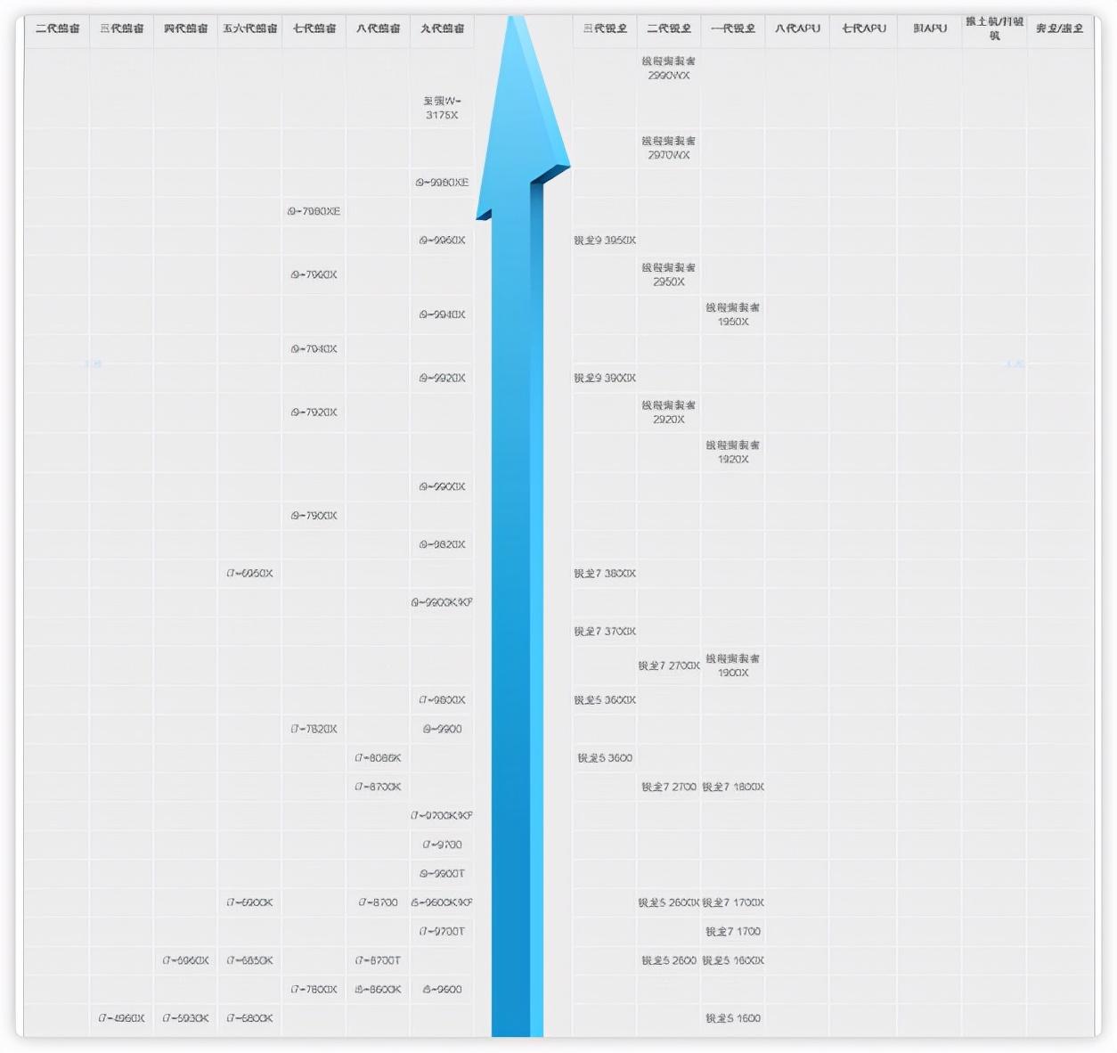 所谓的天梯图就是CPU性能从高到低的排列,通常越靠上,性能越好.