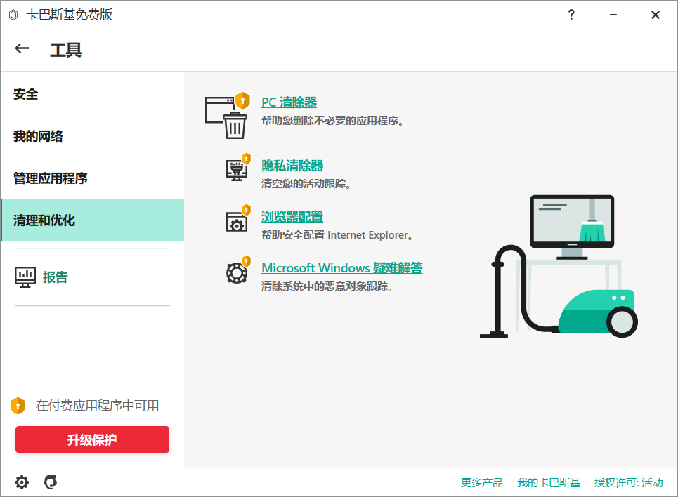 卡巴斯基系统优化的功能在付费软件:《卡巴斯基安全软件》内