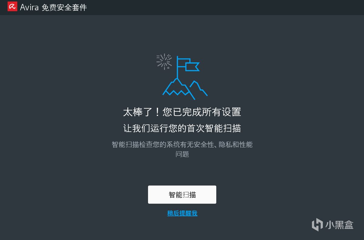 下载后点击exe文件即可安装,小红伞安装完成后首次运行会提示进行首次智能查杀,如果点击稍后提醒的话则会进入后台自动查杀