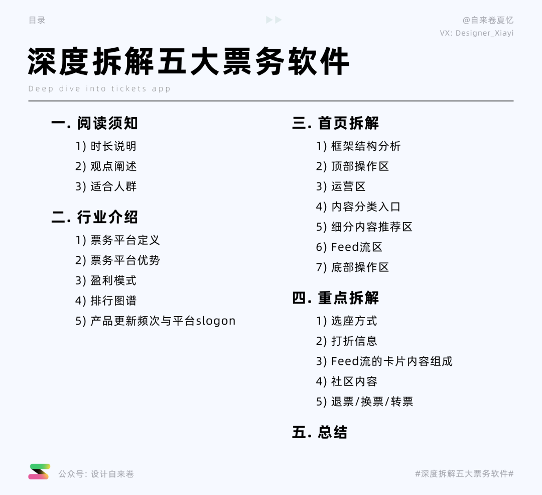 本文通过对两类票务平台,总计5个APP,从首页布局与重点功能的分析与拆解中,我们发现相似的地方,也发现针对同样的问题,不同的思考角度和解决方案,也许能为我们未来遇到问题,提供一些思路和方向。
