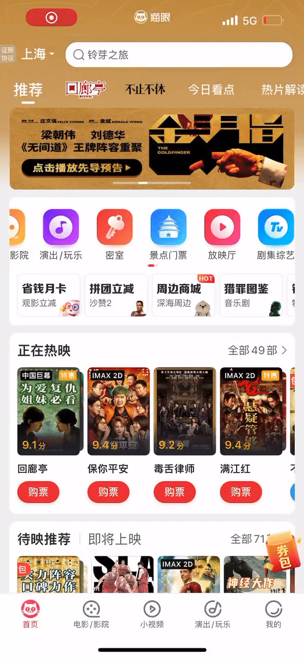 猫眼的运营区藏的很巧妙: