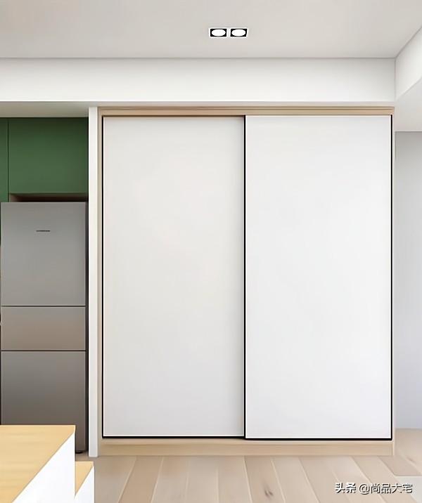 紧接厨房的这个区域设计到顶衣柜,可以收纳家里的衣物,收纳能力满分。