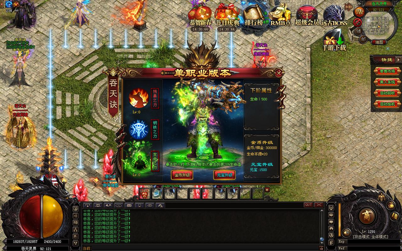 8、本服进阶提升实力的办法为装备加星(一大陆左上角),印记强化,戒指精炼(一大陆右下角万能商人),有实力的玩家可以自行查看