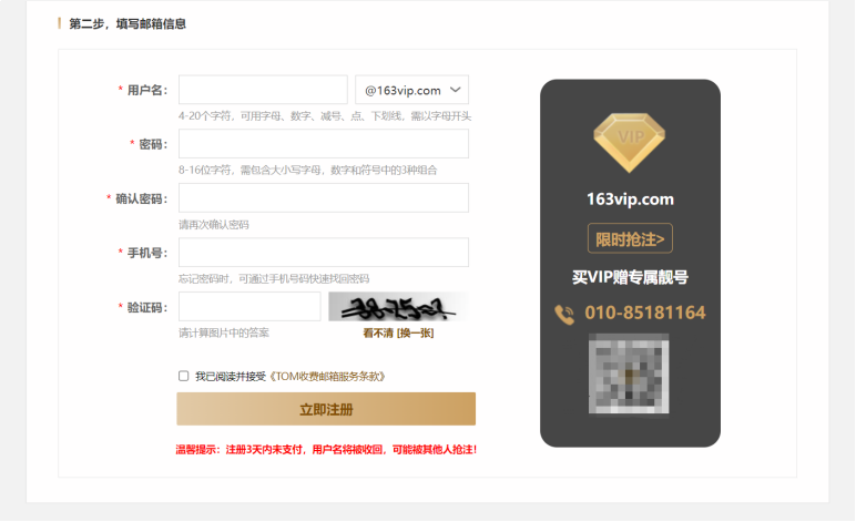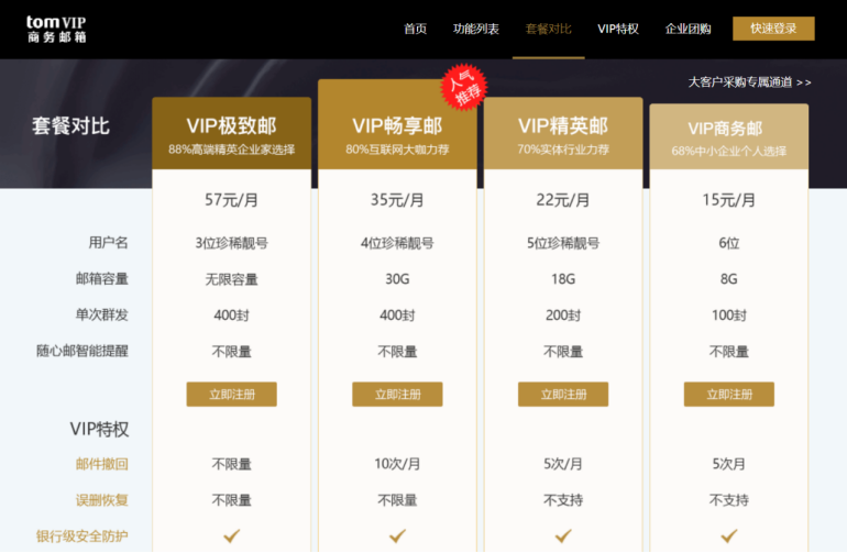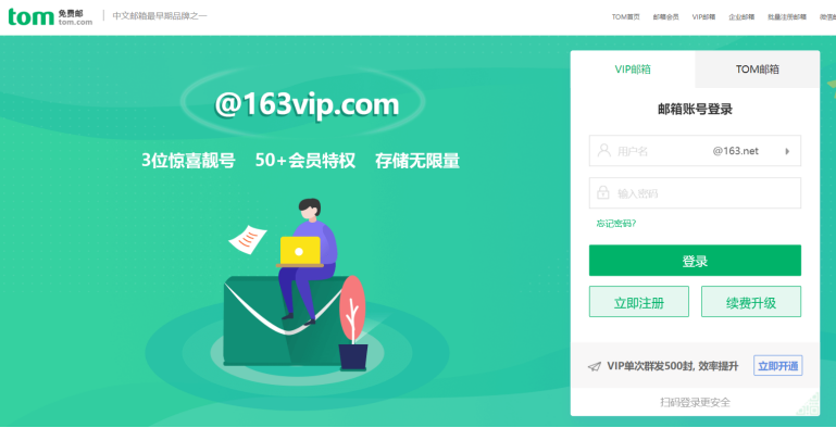 TOM VIP邮箱注册 - 个人收费邮箱-安全稳定-无限容量