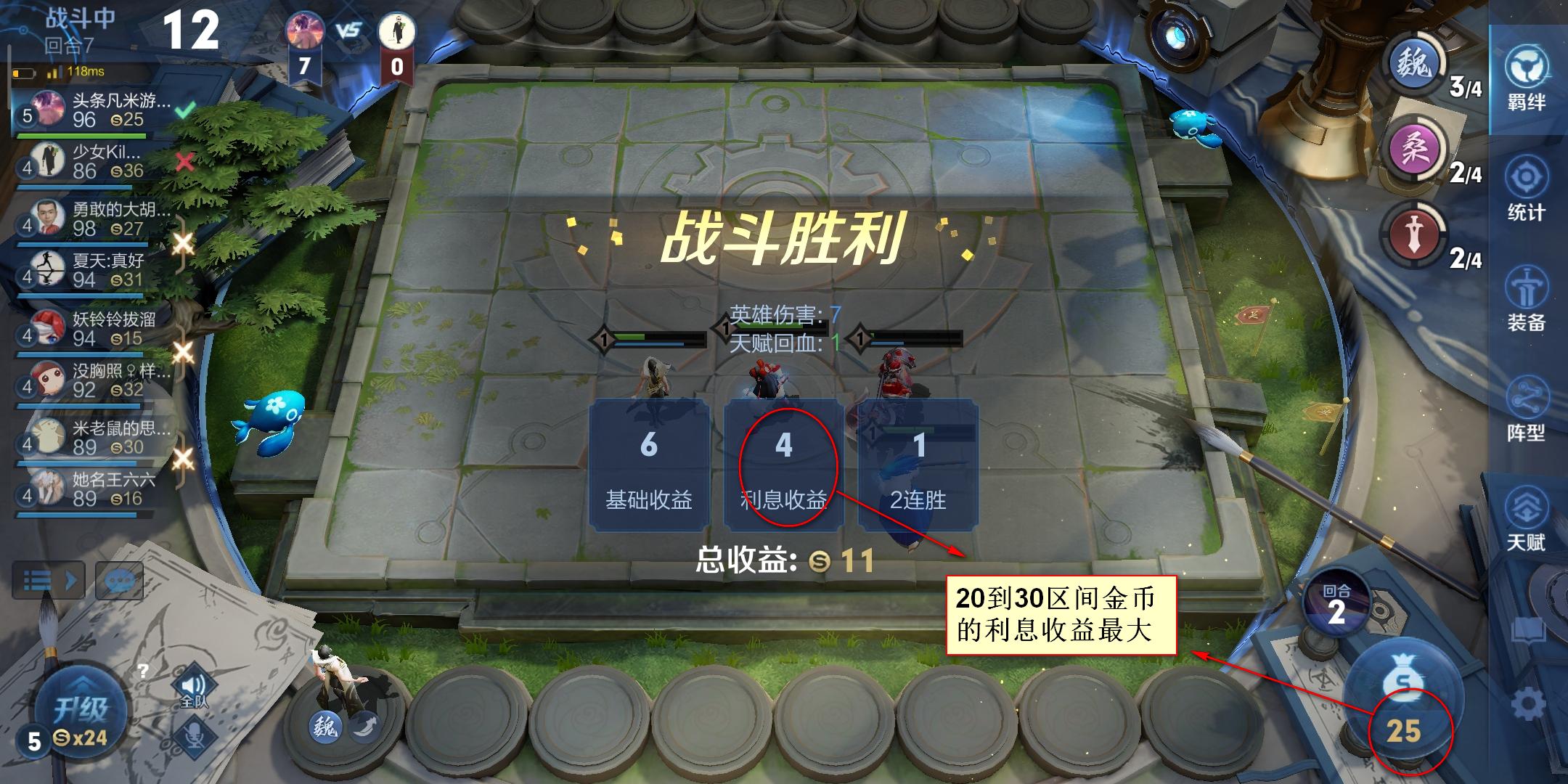 一、金币的数量保持30以上(再不济也要保持20个),可以吃到5金币利息,当然个人觉得20到30区间的利息加成是4个金币,收益最大。但是一旦遇到升级人口会耗费大量金币,升一次人口极有可能陷入贫穷。保持30金币以上的话,一个回合之后,根据战局和对手来选择是否要提升人口(增加羁绊英雄个数触发高级羁绊技能),这样对抗强大对手时更有胜算,而升级人口后自己依然能保证20金币留存库里。
