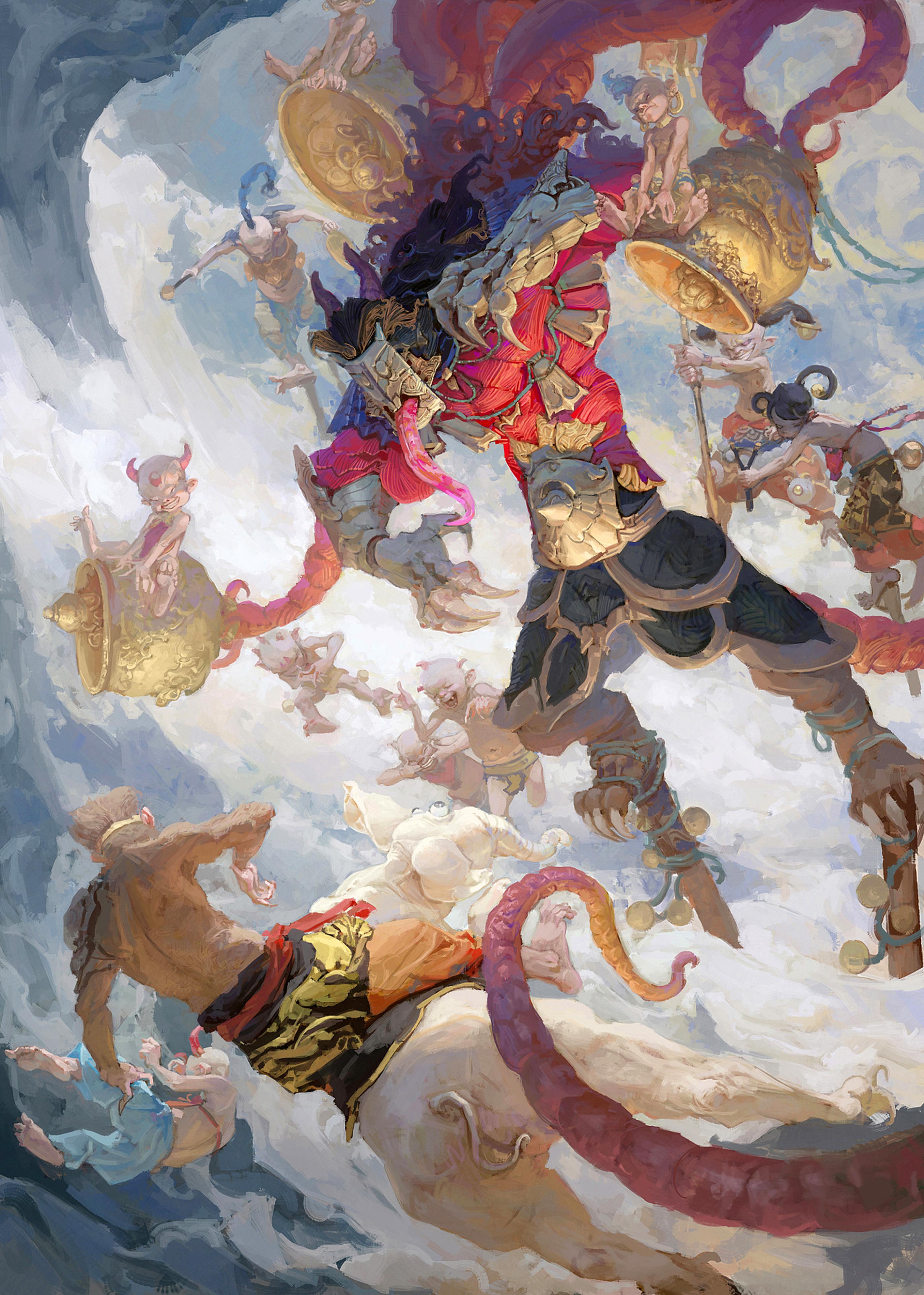 暗黑奇幻西游记 透视动感画风 色调对比强烈 大气磅礴堪比神仙画画