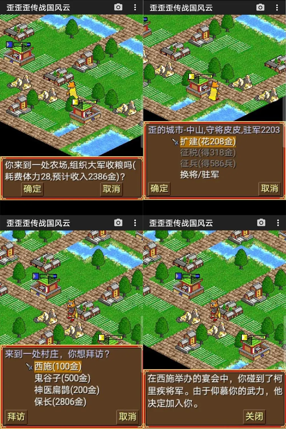 《战国风云》改造了大富翁玩法,游戏由一座偏远的主城开始,掷骰子在大地图移动,途径不同的单元格做出不同的选项触发事件,并逐渐累积实力。