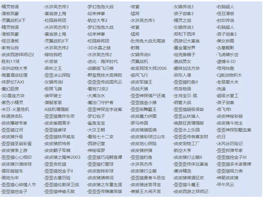 在岩浆的这200多款游戏里,包含着大量诸如五子棋、消消乐这样的小品游戏,其中还有一小半,挂着皮皮猪与歪歪猫的前缀。