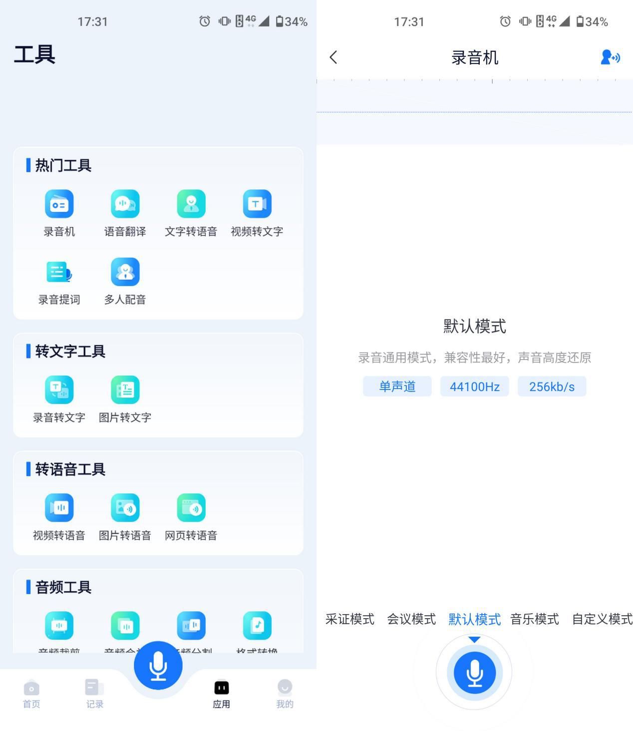 软件介绍:这是一款支持录音、翻译、音频处理等多个功能的录音识别软件。软件中的录音转文字能将录音内容转为文字形式,不再需要担心听不清录音内容的问题,能做到视听结合!录音机工具设有多个模式可以选择,也可以自定义模式,兼容性好,高度还原原声。无论是课堂内容,还是重要会议,都能清楚地录制下来,保证录音质量!