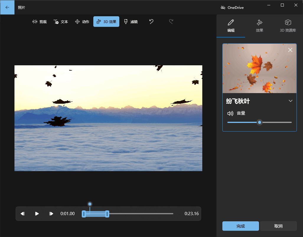 分享理由:这是Windows系统自带的一款视频编辑处理工具,除了基本的视频裁剪、视频拆分、添加文本的功能外,软件还提供了丰富的视频特效和3D效果给我们进行选择,基本上可以满足我们在添加视频特效上的需求。