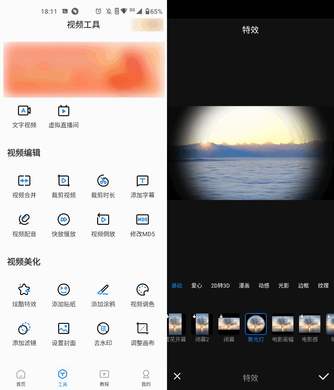 分享理由:虽然这款软件的名字叫做无痕去水印,不过除了去水印的功能外,它可以让我们给视频添加纹理、边框、漫画、光影、分屏、转场等丰富的视频特效,基本上可以满足我们在添加视频特效时的各种需求。