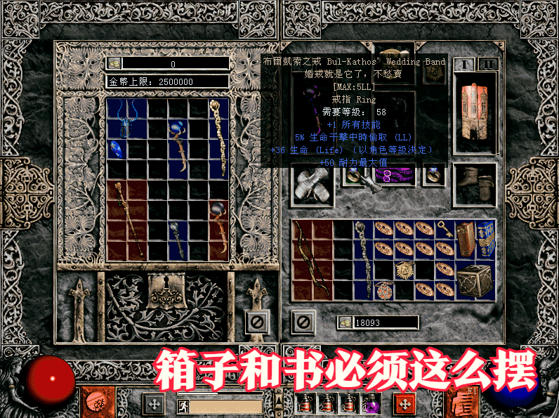 《暗黑破坏神2》时期,最初玩的时候,身上有:钥匙、溶解药剂、体力药剂、药水、垃圾宝石。背包被占得满满当当,都不知道拿这些玩意干嘛!
