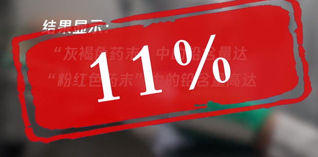 但是当记者拿到这两种药去委托第三方权威机构进行检测的时候,发现其中治疗口腔溃疡的药,含铅量超过5%, 治疗咽炎的粉红色药粉含铅量超过11%。