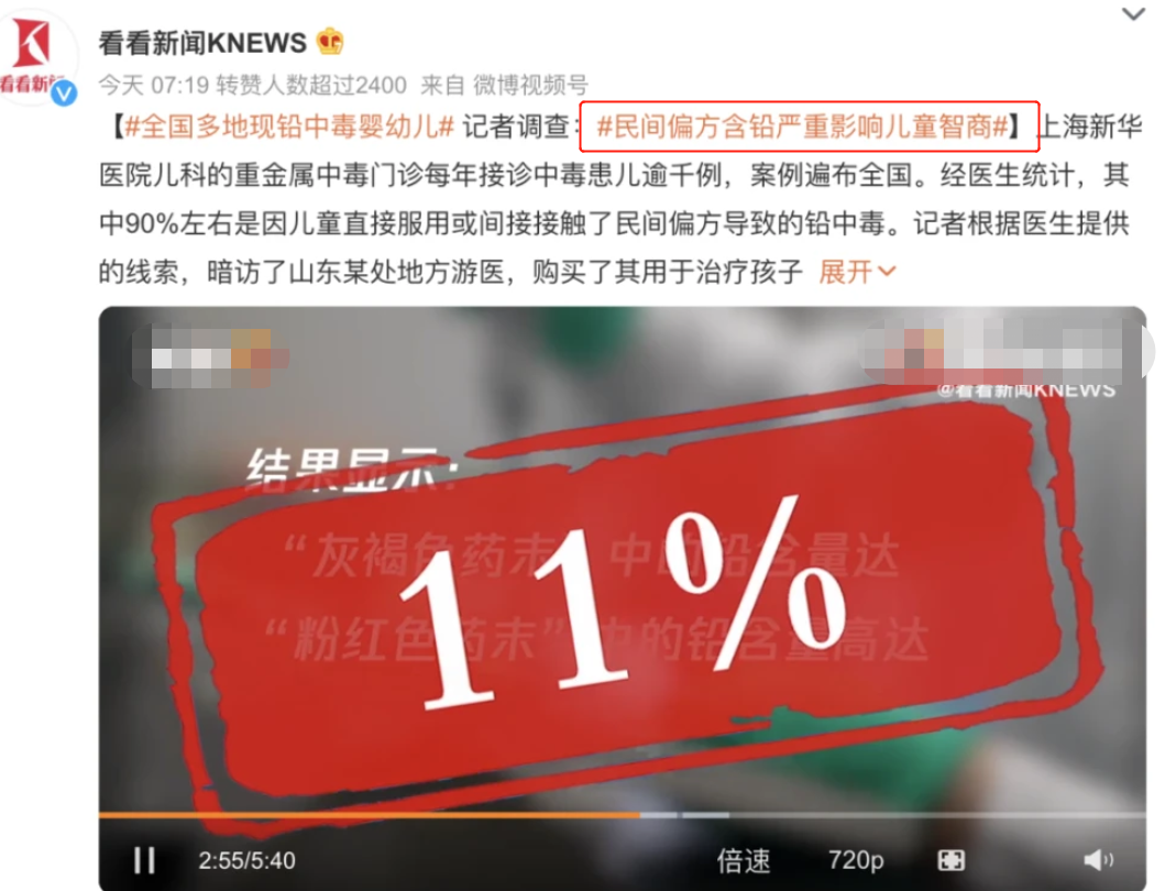来源/CCTV生活圈图片/摄图网责编/田园黄蝶审签/一帆监制/志飞出名偏方导孩子铅中毒:每年上千娃中招,轻则变傻重则致命