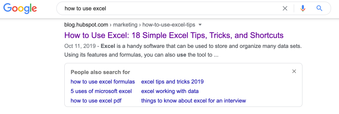 例如,我们在谷歌上搜索“how to use excel”,除了付费广告之外,第一个出来的是hubspot的博客: