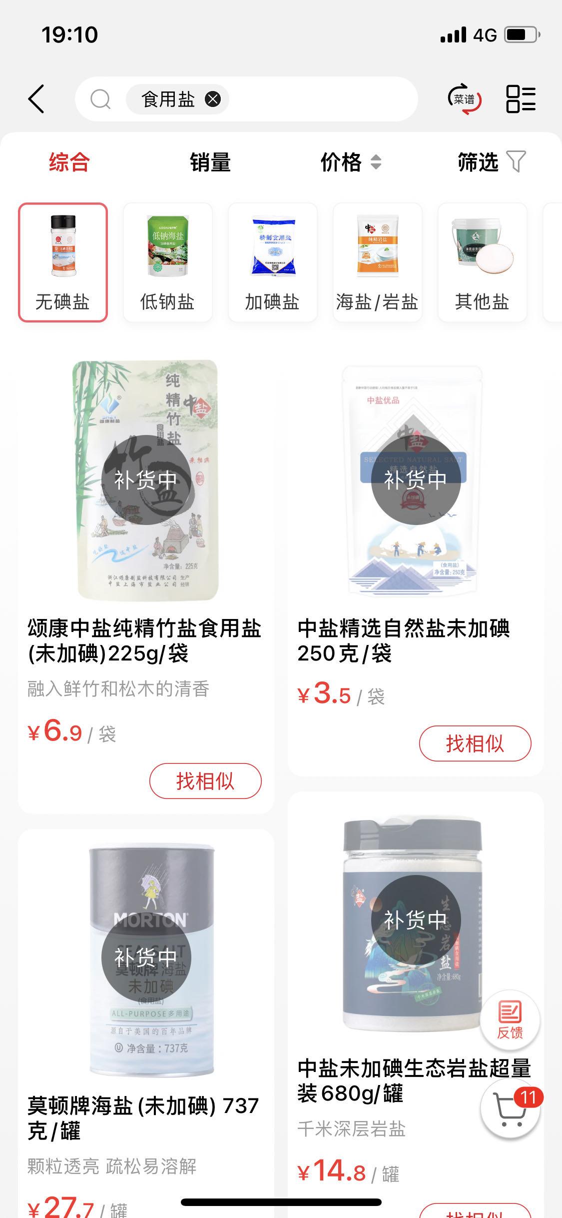 多个线上商超的食盐均显示无货状态。 (网页截图/图)