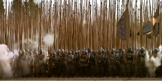 又如影片最后对弗兰德斯军团在罗克鲁瓦壮绝的战败。