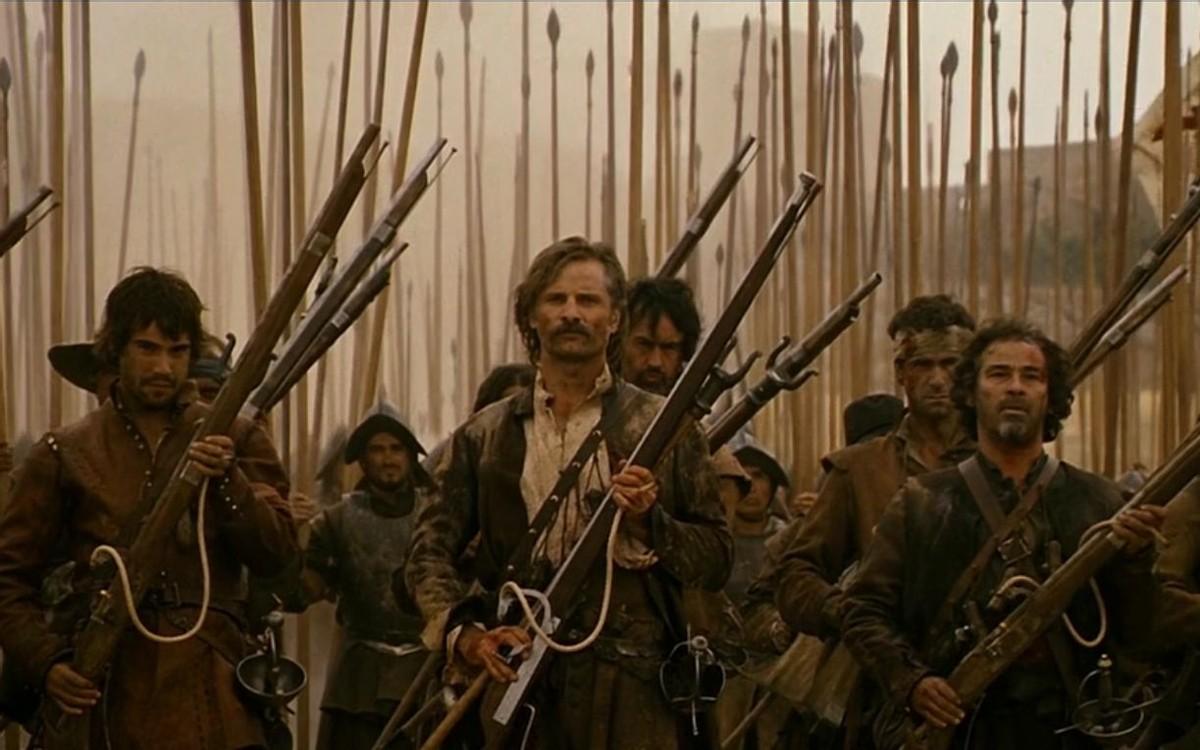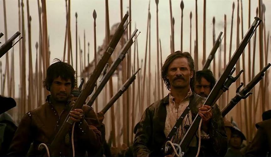 影片中值得说道的兵器首先要一是西班牙刺剑,二是西班牙长矛和火绳枪。