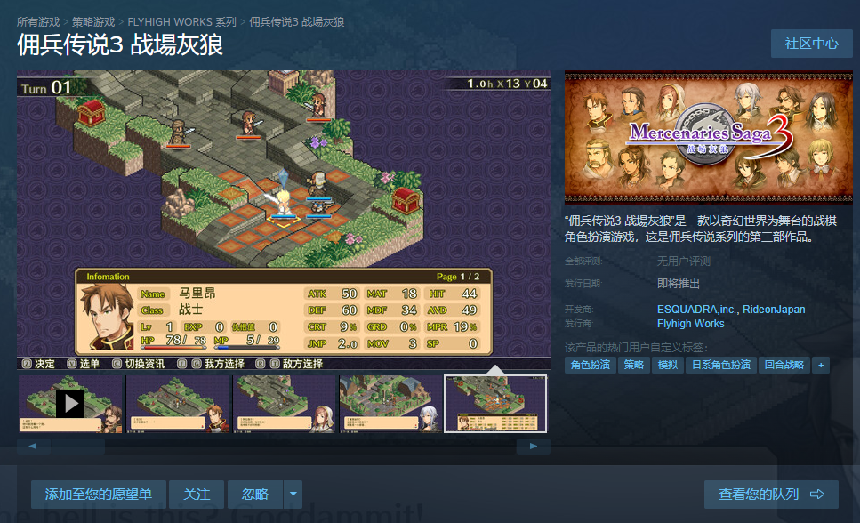 战棋RPG《佣兵传说》系列上架Steam 支持中文