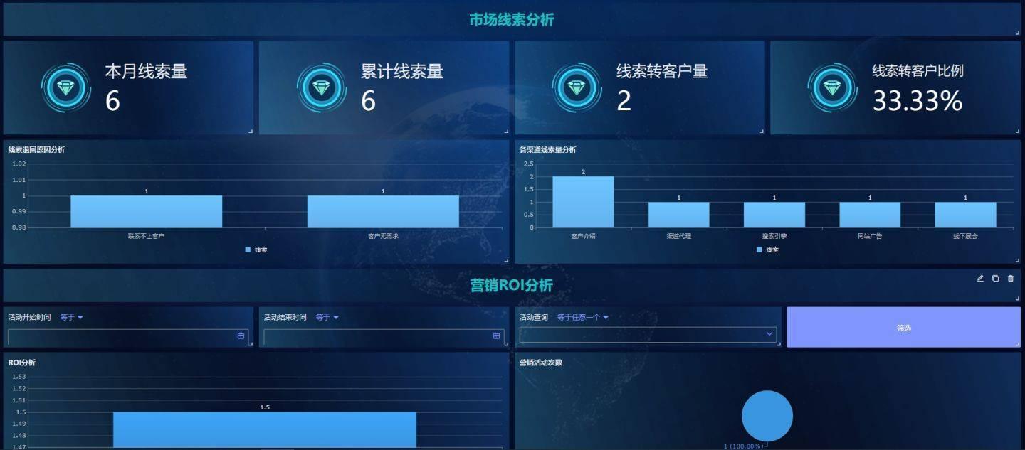 在售前阶段,我们通过多种渠道获客后录入crm系统成为线索,我们需要对市场线索进行分析,分析线索量和转客户比例,从而进一步进行营销分析。