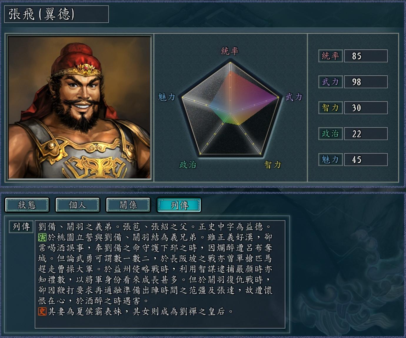 如果按正常武评系统,以吕布为参照点设为100武力的话,一般会认为张飞的武力为99或者98的比较多。
