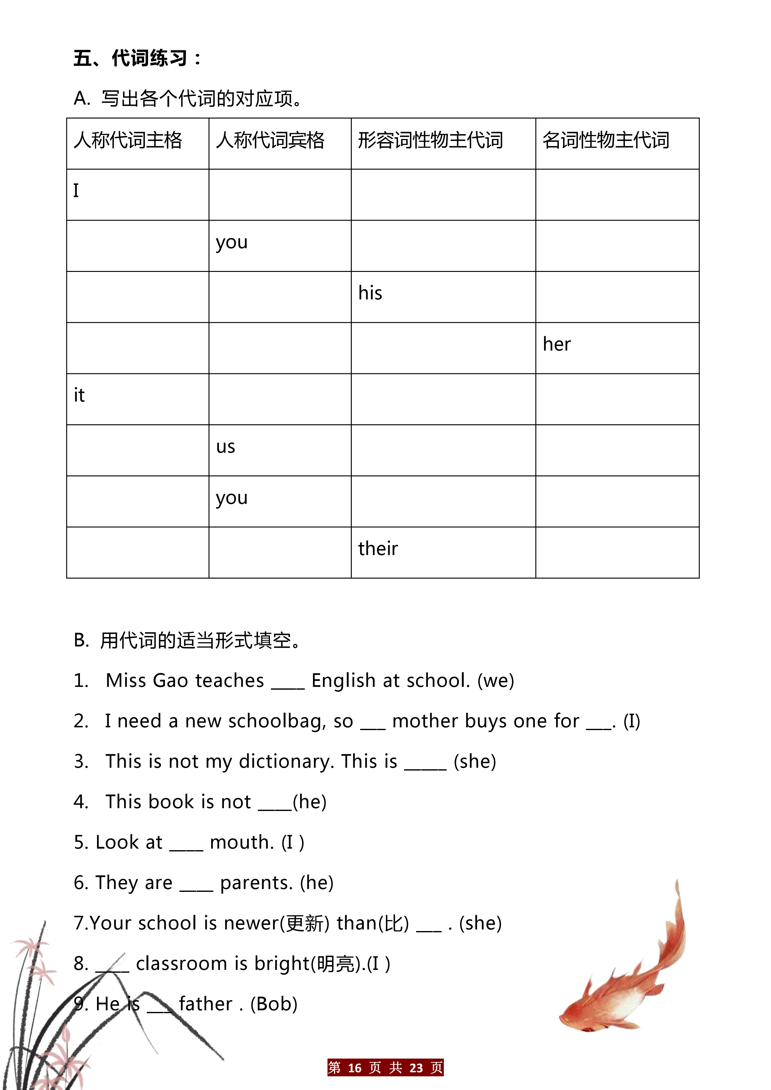 三年级英语上册(人教版)各单元知识汇总、语法练习、单词默写,9月份上三年级必备。
