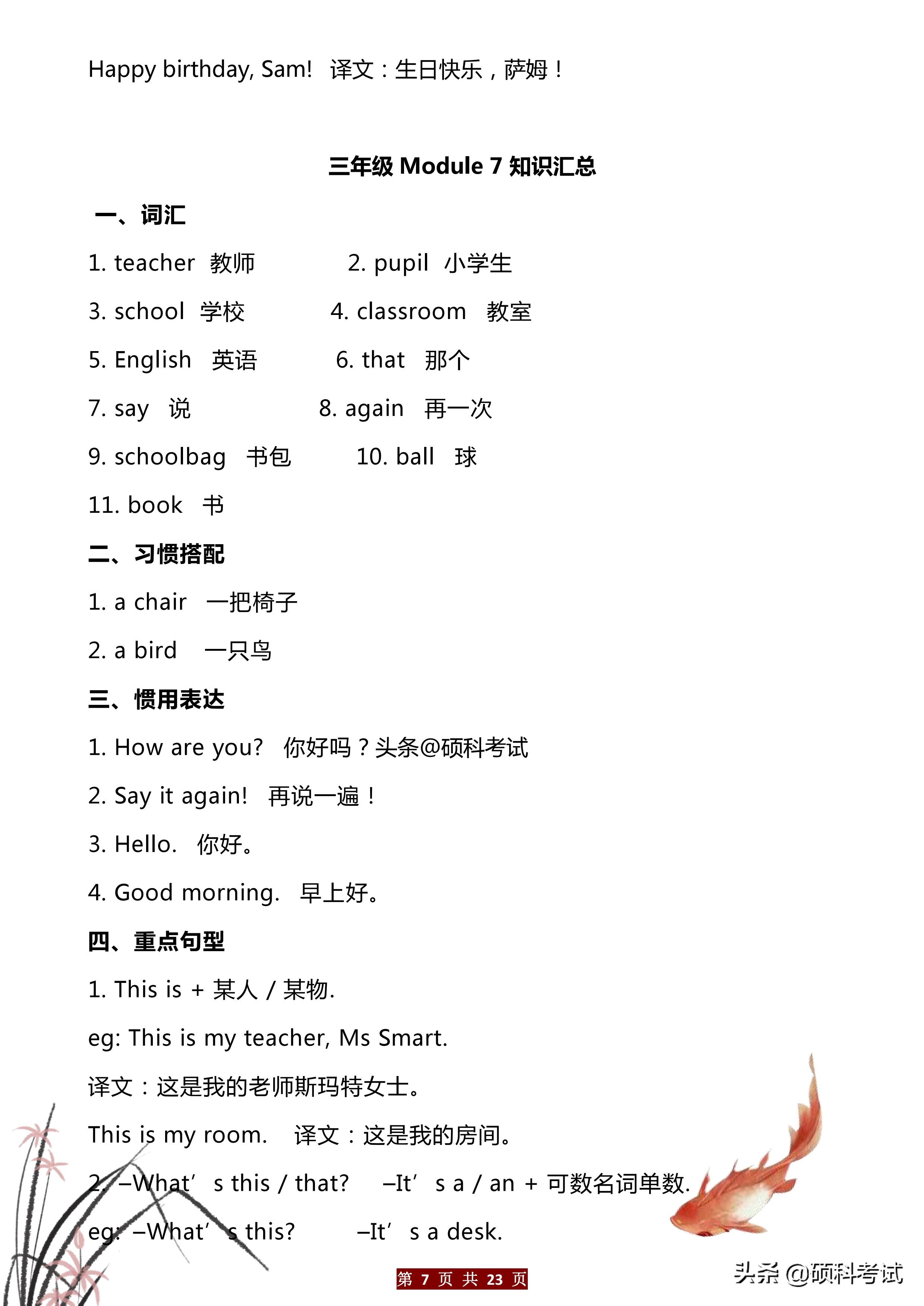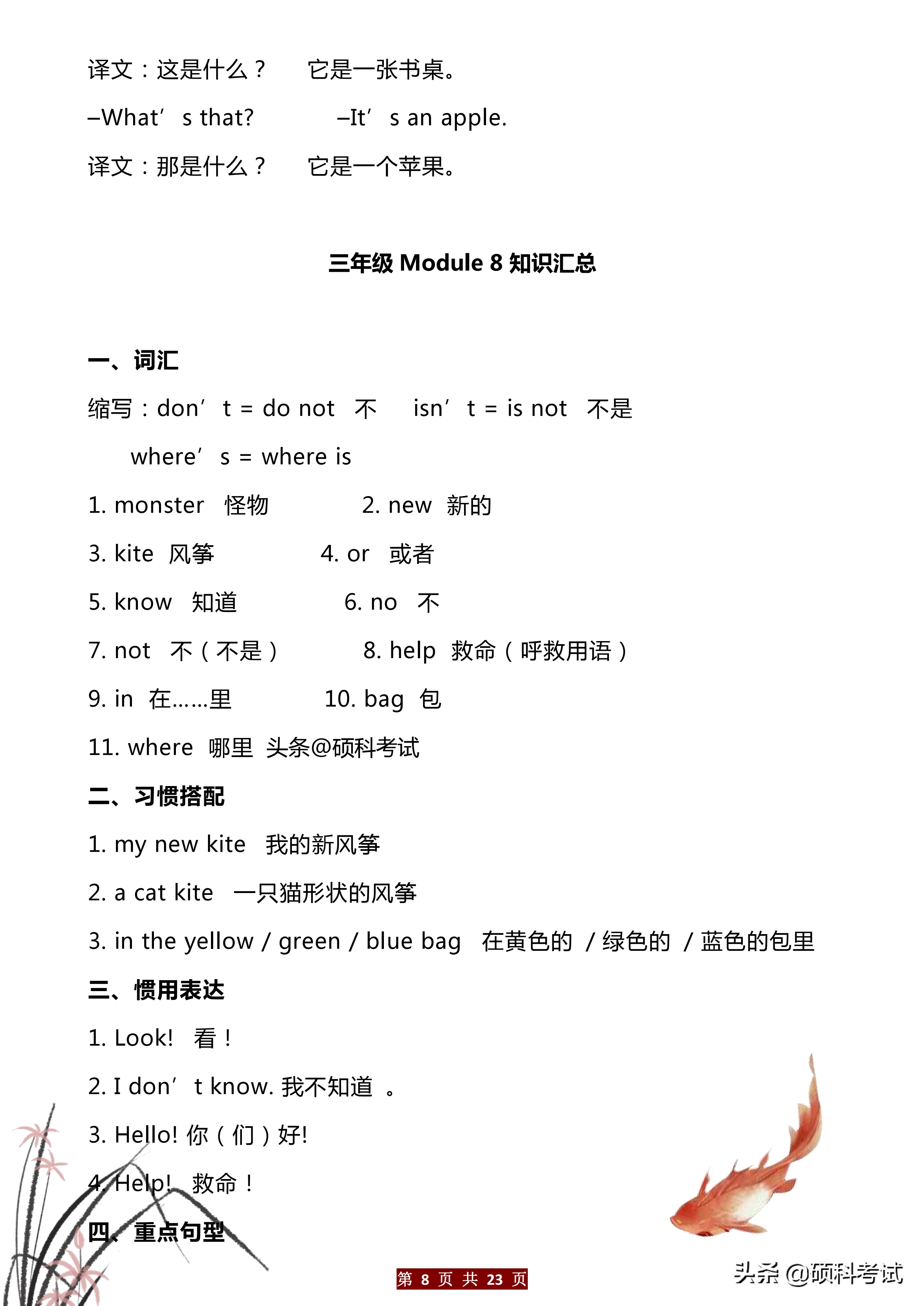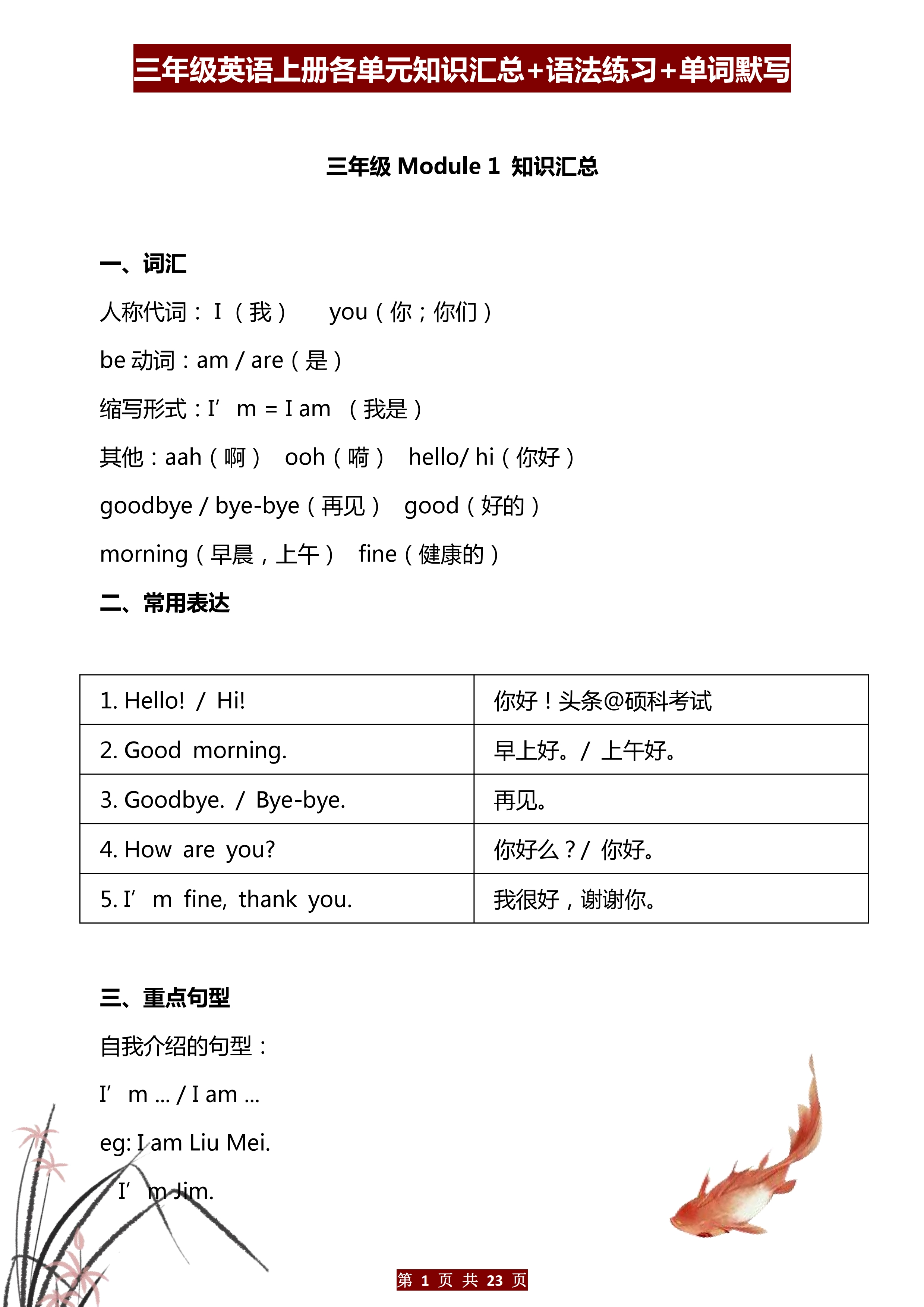 各单元知识汇总、语法练习、单词默写汇总是三年级必须要掌握的知识,一般老师讲课进度较快,9月上三年级的小朋友,一定要提前学习。