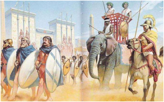托勒密王朝的军队(前排为加拉太卫队,后排步兵为埃及本土步兵)