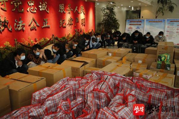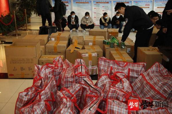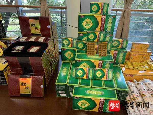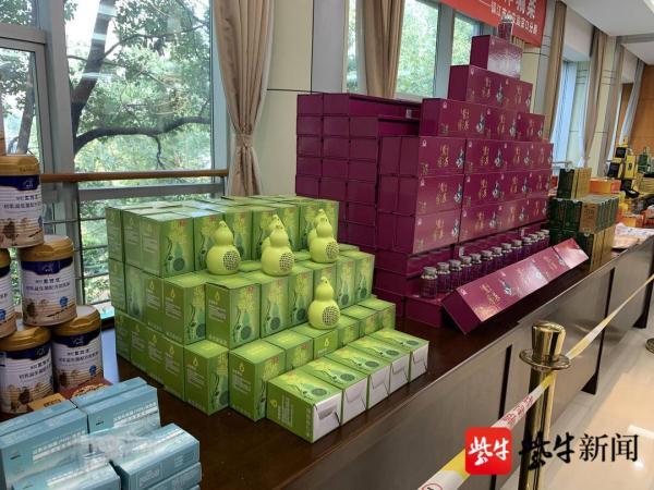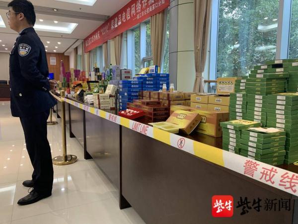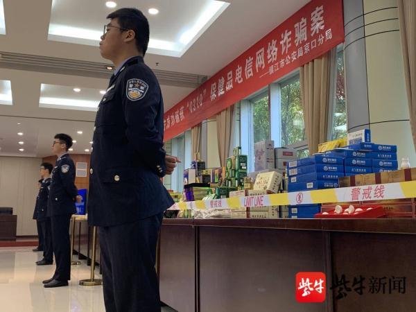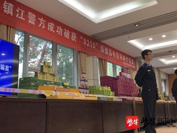 据悉,这是镇江近年来破获规模最大的一起保健品电信网络诈骗案。现场,搜缴的假冒伪劣保健品,堆了几长条桌。