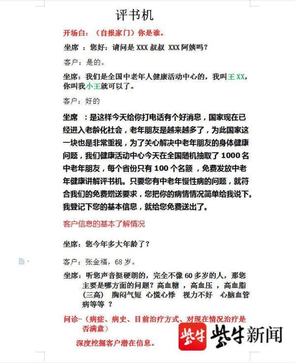 “话术”指南明确写有对话步骤,即:谎称专家——问诊病情——销售产品。