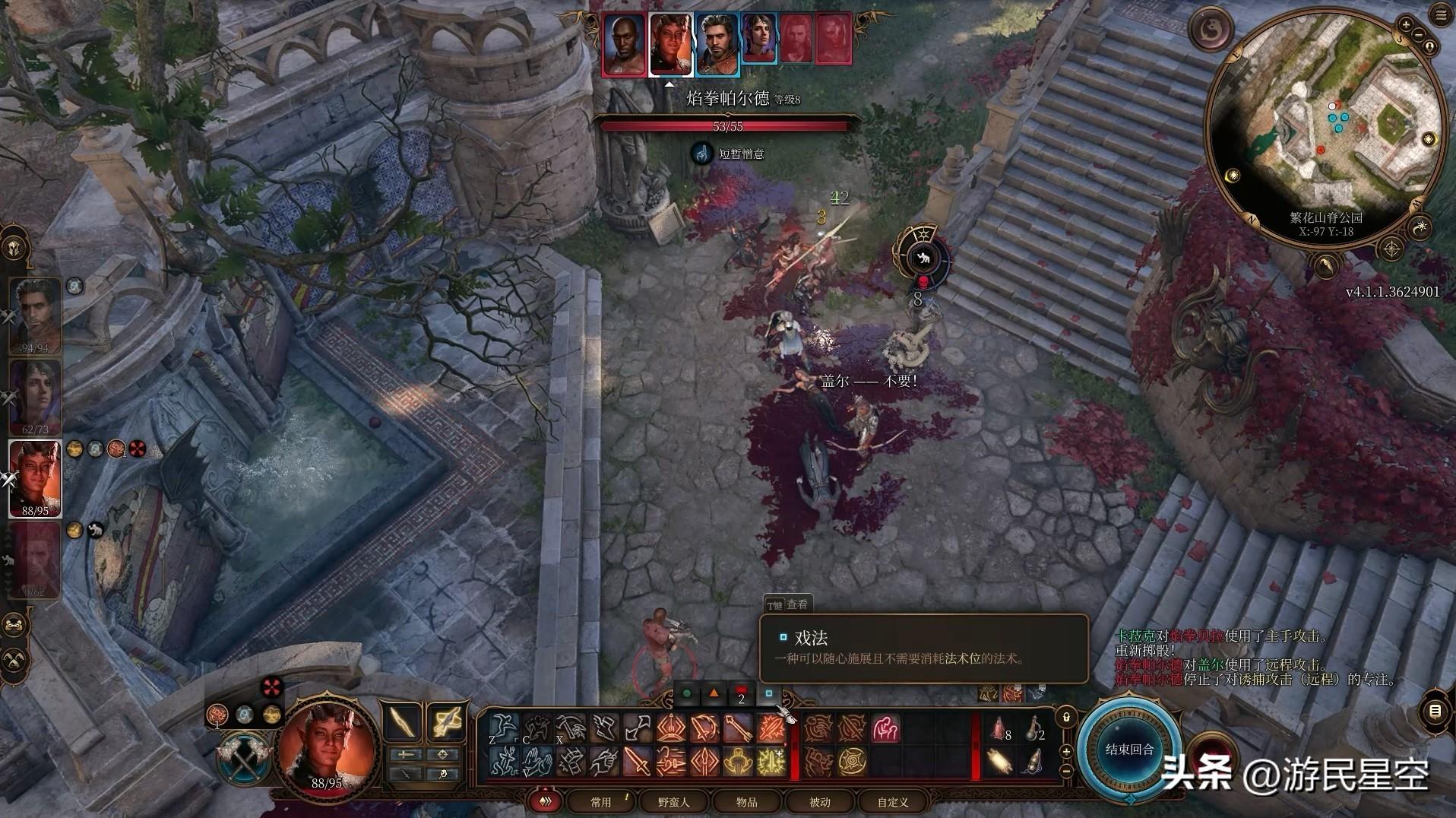 另外,在战斗环节中,一些《博德之门3》的性能问题也被放大了。在我的游玩过程中,经常会出现轮到某个敌人的回合时却卡住不动,或者是某位NPC盟友发呆不出手的状况。尤其是当游戏临近最终战时,一个异常BUG导致我的帧数一度降到了仅有10帧左右,连移动镜头也十分困难,这让一场本该精彩的战斗,却卡顿得像PPT一样难以游玩。