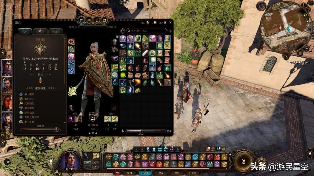 研究不同职业兼职的Build搭配,也成为了我后期重要的乐趣来源。我尝试将卡菈克洗点成狂战士+圣武士+战士的组合,打造出了一台刀刀烈火的杀戮机器;也试过让影心洗点成圣武士+邪术师,变成了甲厚血多还能打魔爆术的强力辅助。