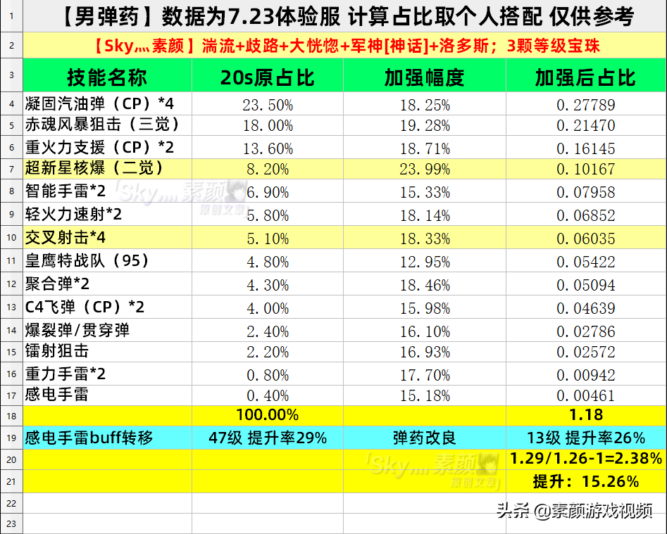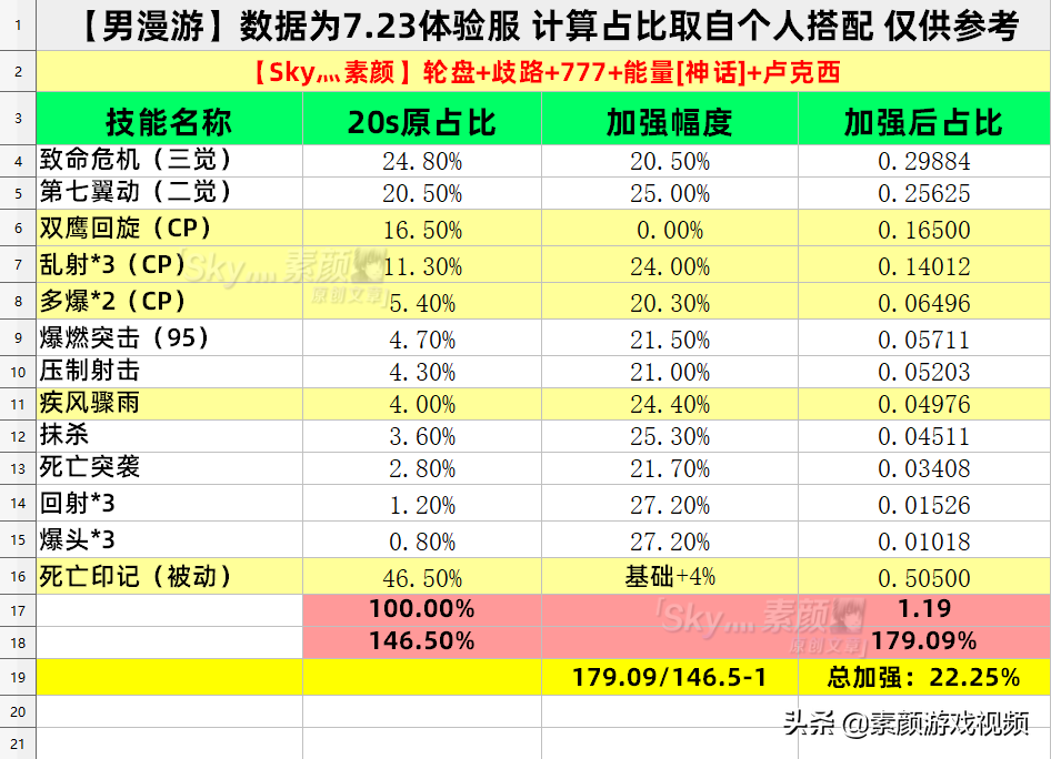 【注】表中打法未涉及的加强:疯狂屠戮+23.1%,烟尘弹+21.4%,三连发+10%