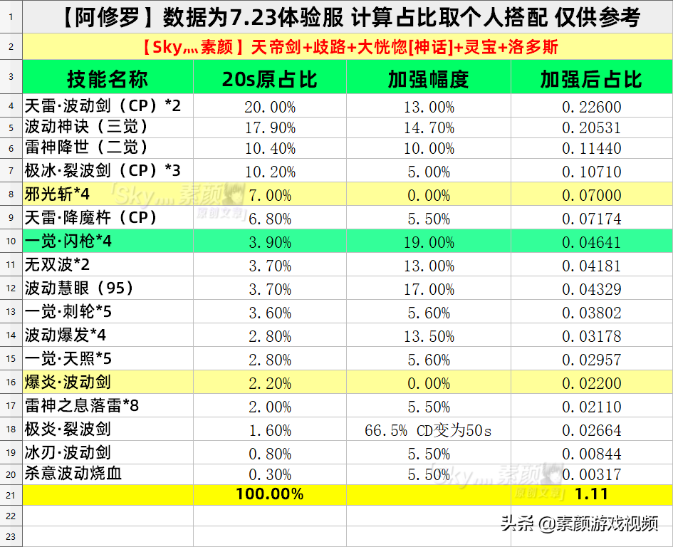 按个人打法的20s占比计算(4邪光+3大冰+5轮平X),20s提升为11%。 常规打法(3邪光+2大冰+少量平X或者加入不动)所获提升应该会稍微大一些(13%~14%)。