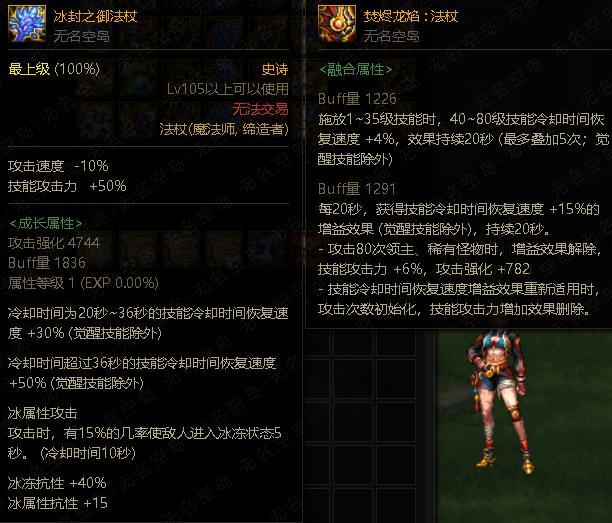 【武器】105级史诗魔杖1416魔攻128智力,105级史诗法杖1544魔攻85智力