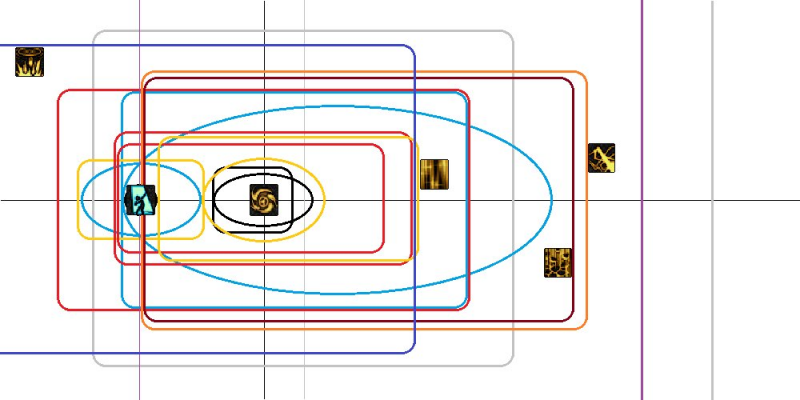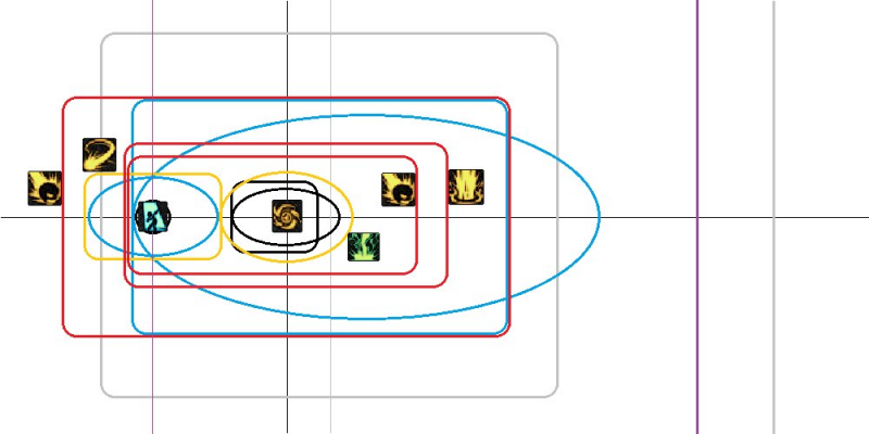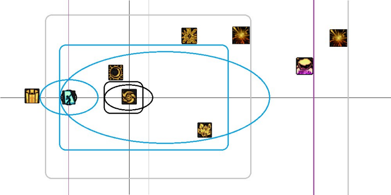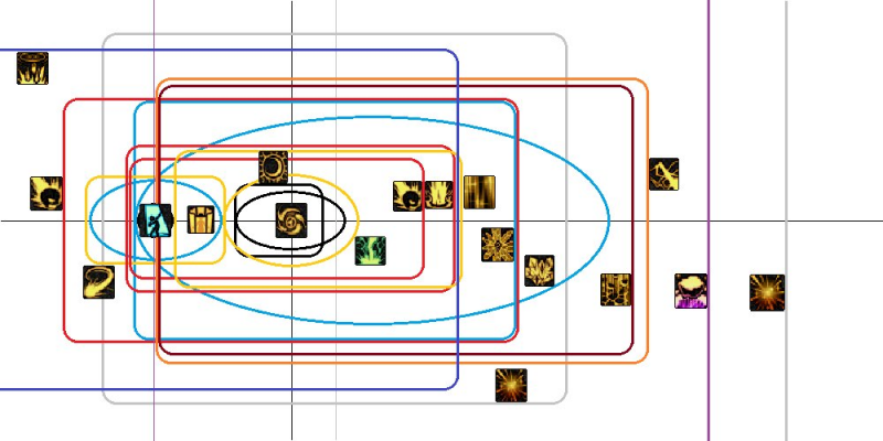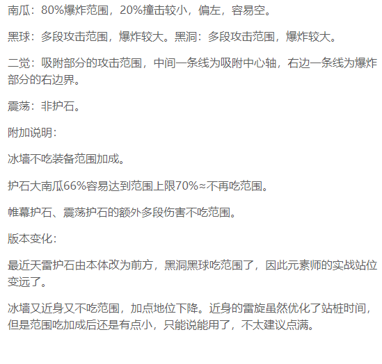 区分开“范围”和“射程”两个概念。黑球、黑洞是范围小射程短。天雷、一觉是范围小射程远。三觉地火、极冰、震荡、水晶、门、交响、二觉、三觉,这些都是范围大射程远。