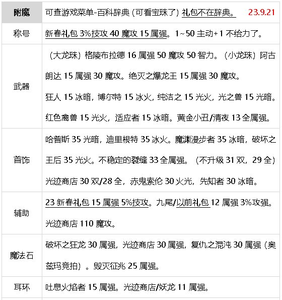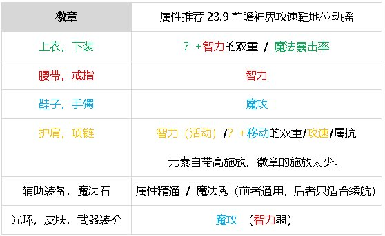 【徽章】(玲珑徽章不计,灿烂黄色15智力不计)灿烂徽章:鞋子手镯武器装扮光环皮肤十个蓝色徽章150魔攻,四个红色徽章100智力,四个双重红绿徽章60智力6%暴击率,两个白金徽章16智力,双重黄蓝徽章移速不计