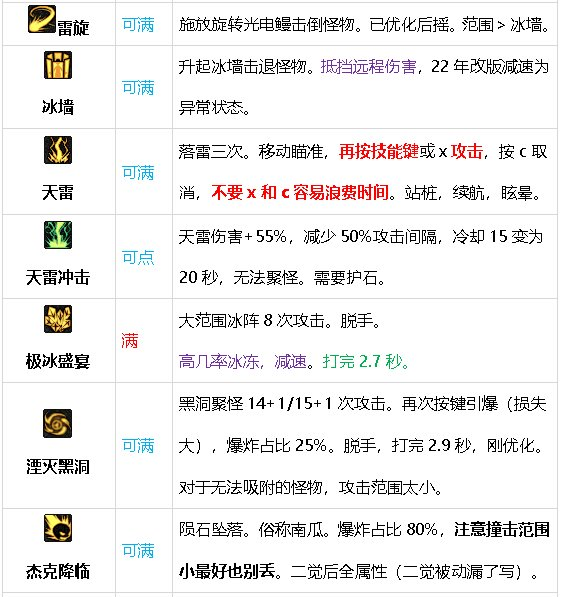 元素霸体和无敌少,考虑一下霸体装备。尤其是使用黑球黑洞,射程短,对走位影响较大。或用好霸体之外的技能,天击、落花、冰墙、草人、强化后跳。可以点满草人冷却短,拾取加速。