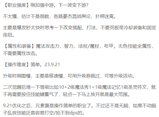 这几个因素的先后排序考虑了重要性,不过实际情况不一定,有些职业擅长范围射程,有些职业擅长位移,有些职业擅长生存。