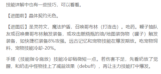 原主动技能[感电手雷]的buff效果转移至被动技能[弹药改良],在这一点上会暂时损失技能等级宝珠的特色提升,但可以通过后续更换技攻宝珠进行弥补,长远看来无伤大雅。