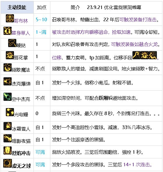 可移动的炮台法师。全部技能无位移,可以当作炮台原地输出。但也不是必须原地,因为多数技能脱手快,可以放一个走一步或天击/落花掌/后跳,躲避boss攻击有些灵活性。要堆一些移速,不能全指望天击/落花/后跳,否则像乌龟蜗牛爬。