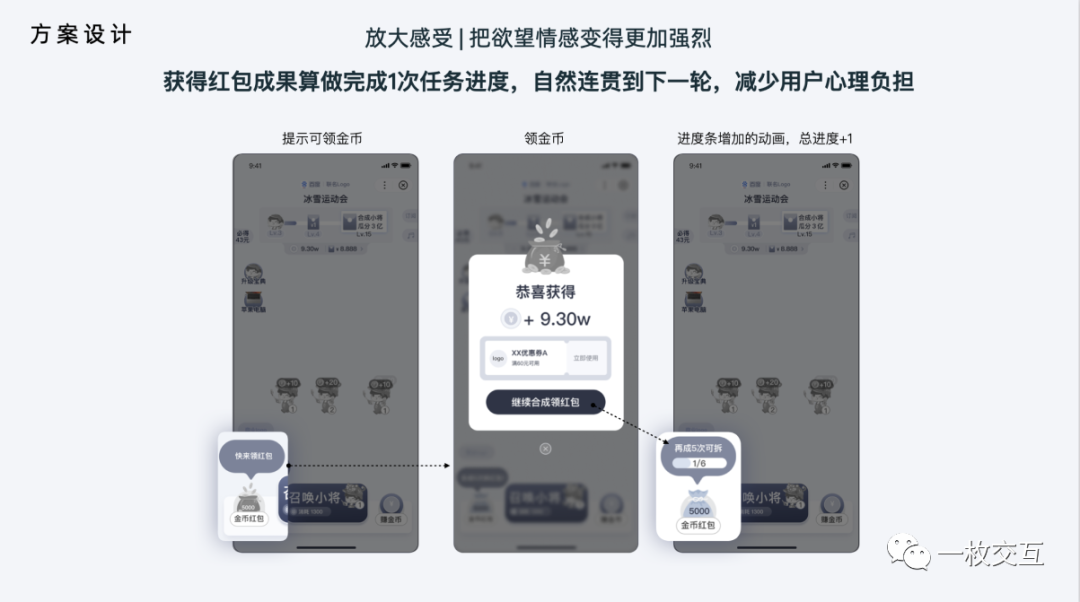 在参与过程中呢,假设用户需要5次可拆一个红包,拆完的奖励弹窗需要一次点击行为,我们在做这里的设计时,把此处的一次操作给用户计算到下一个计算周期中,这样有种永远不会从0开始的感觉,是不是觉得降低的一些些难度(回答:是)。