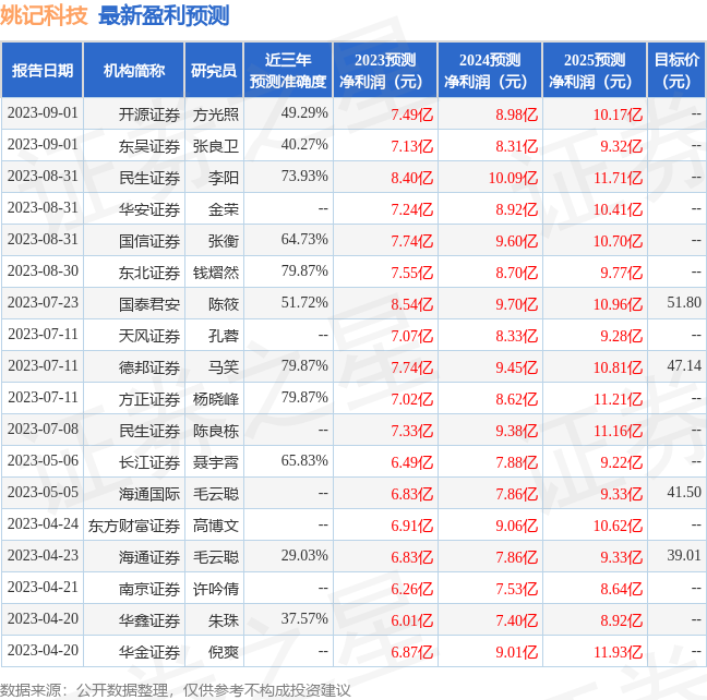 最新盈利预测明细如下: