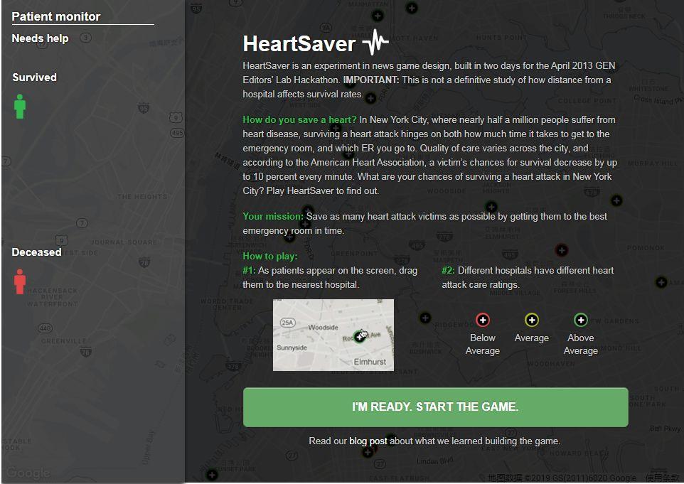 《心脏守护者(HeartSaver)》是美国知名非盈利新闻机构ProPublica在一次编程马拉松中,用两天时间开发出的新闻游戏。