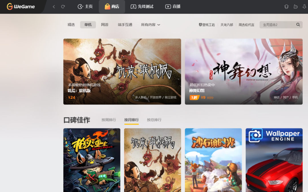商店只能看到零星的国产或者独立游戏,与 Steam 庞大的游戏库相比,根本没法比。