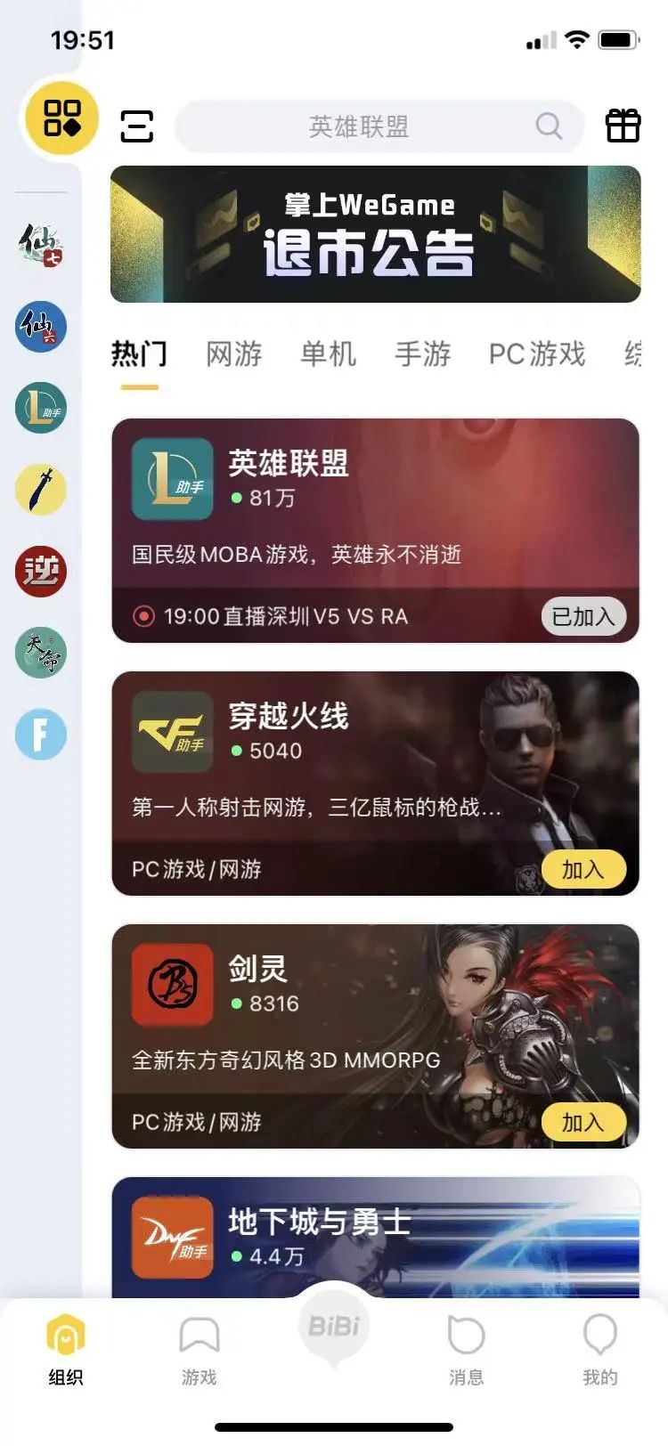 没说完呢,停运的是英雄联盟官方助手——掌上 WeGame !