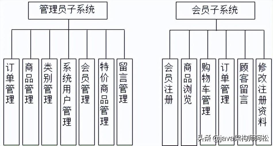 分为管理员和会员两个大模块: